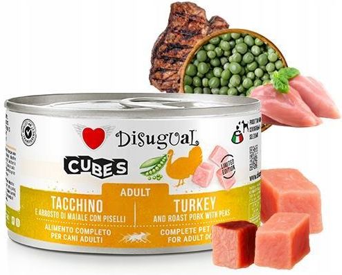 DISUGUAL CUBES Adult TURKEY puszka 150g mięsne kostki Indyk Wieprzowina Karma pełnoporcjowa dla psa - Disugual Cubes. Skład pieczony indyk (mięso) 62% wieprzowina 30% groszek 4% substancje mineralne ksyloza Składniki analityczne Wilgotność 80,2% białko surowe 8,2% oleje i tłuszcze surowe 5,7% …