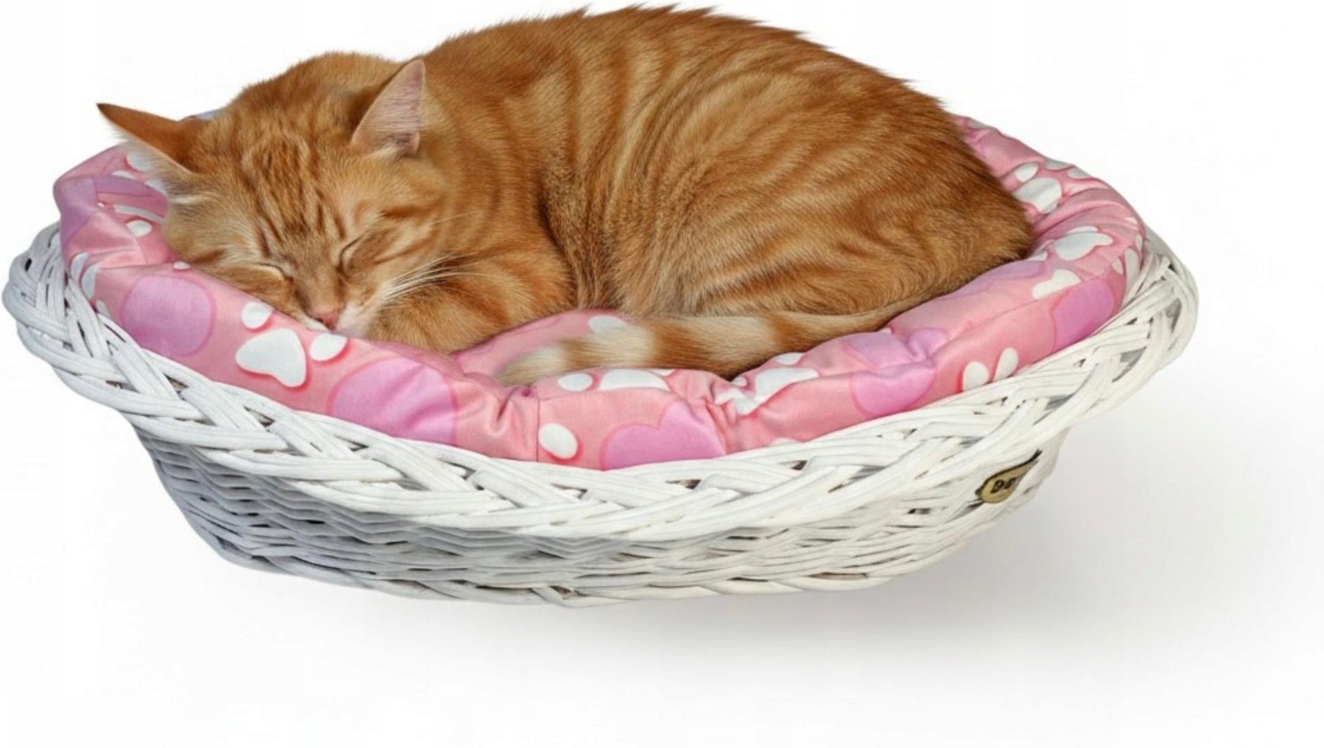DOTTY oferuje Legowisko dla kota lub psa - w koszyku z wikliny lakierowanej na kolor biały WZÓR: RÓŻOWY W SERDUSZKA I ŁAPKI Opis legowiska DOTTY Rozmiar 60 S Przybliżone wymiary zewnętrzne ok. 62 x 45 cm Wymiary są podane z tolerancją +/- 2 cm, ponieważ każdy koszyk jest unikalny, ręcznie …