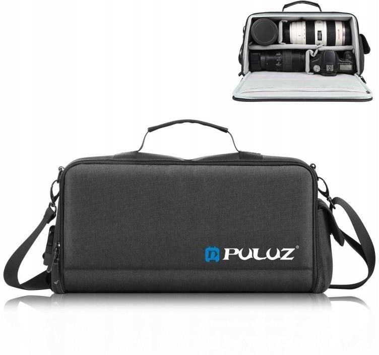 Torba Fotograficzna na Aparat + 3 obiektywy + Akcesoria Foto Kolor: CZARNY Wygodne i bezpieczne przenoszenie sprzętu Duża i pojemna torba fotograficzna Puluz na jedno ramię to niezbędny element w pracy fotografa. Przechowuj cały potrzebny sprzęt w bezpieczny i wygodny sposób. Dzięki konstrukcji torby, Twój sprzęt jest odpowiednio zabezpieczony.Nie musisz więc martwić się o uszkodzenie aparatu, obiektywów lub innych akcesoriów fotograficznych. Torba wykonana jest z wodoodpornego materiału, odpornego na zniszczenia. Kompaktowa i przenośna Torba jest lekka i wygodna w przenoszeniu. W środku znajdują się przegrody, które pozwalają na dowolną organizację przestrzeni wewnątrz torby. Regulowane ramię pokryte jest miękkim i wygodnym materiałem, co gwarantuje komfort podczas noszenia torby. Wymiary: 37 x 13 x 20 cm Organizacja przestrzeni Zorganizowana przestrzeń wewnątrztorby pozwoli na ulokowanie wszystkich niezbędnych przedmiotów. Dzięki wyjątkowej i funkcjonalnej organizacji komór, w torbie zmieścisz cały potrzebny sprzęt. Modyfikuj ułożenie komór według własnych potrzeb. W plecaku zmieścisz aparat, 3 obiektywy oraz inne niezbędne akcesoria fotograficzne. Dodatkowo kieszeń boczna pozwoli na przechowywanie małych przedmiotów np. telefonu lub kabli. Torba dostosowana do Twoich potrzeb Modyfikuj wnętrze torby według własnych potrzeb. Funkcja ta pozwoli Ci na dowolne ułożenie komór w torbie, tak aby zmieścić wszystkie Twoje rzeczy. Składana konstrukcja umożliwi wygodne i bezproblemowe przenoszenie torby także bez zawartości. Wodoodporny materiał Torba fotograficzna wykonana jest z wodoodpornego materiału. Dzięki temu nie musisz martwić się o uszkodzenie Twojego sprzętu. Przenoś sprzęt niezależnie od pogodny i warunków. Ramię torby wykonane jest z miękkiego i przepuszczającego powietrze materiału, co zwiększa komfort podczas noszenia torby. Zestaw zawiera: Torbę fotograficzną Puluz Pokrowiec Regulowany pasek na ramię