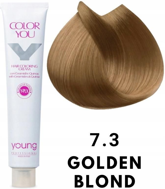 FARBA NR 7.3 ŚREDNI ZŁOTY BLOND Young Color You Professional to wyjątkowa farba do włosów zawierająca 111 odcieni, która łączy w sobie innowacyjną formułę z najwyższej jakości składnikami pielęgnacyjnymi. Ta farba zawiera unikalną cząsteczkę PLEX, ceramidy oraz komosę ryżową, które zapewniają kompleksową pielęgnację podczas procesu koloryzacji. Cząsteczka PLEX to zaawansowany składnik, który chroni włosy przed uszkodzeniami spowodowanymi przez zabiegi chemiczne, takie jak farbowanie czy rozjaśnianie. Działa on głęboko w strukturze włosa, wzmacniając go i zapobiegając łamliwości. Dzięki temu włosy pozostają zdrowsze, gładkie i odporniejsze na uszkodzenia. Ceramidy są kluczowymi składnikami, które pomagają w odbudowie i wzmocnieniu struktury włosa. Wnikając głęboko w jego warstwy, ceramidy uzupełniają ubytki w strukturze włosa, przywracając mu elastyczność i sprężystość. Dodatkowo chronią włosy przed utratą wilgoci, zapewniając im odpowiednie nawilżenie i zapobiegając przesuszeniu. Komosa ryżowa to naturalny składnik o wielu właściwościach pielęgnacyjnych. Bogata w składniki odżywcze, takie jak witaminy, minerały i proteiny, komosa ryżowa nawilża i regeneruje włosy, nadając im zdrowy wygląd i blask. Dodatkowo łagodzi podrażnienia skóry głowy i wspomaga jej naturalną równowagę. Dzięki połączeniu tych składników, farba Young Color You Professional nie tylko zapewnia trwały i intensywny kolor, ale także pielęgnuje włosy od wewnątrz oraz nie podrażnia skóry głowy. Odkryj tajemnicę pięknych i zdrowych włosów z farbą Young Color You Professional! Sposób użycia W niemetalowej miseczce wymieszaj farbę z oksydantem 10-20-30-40 vol., w proporcji 1:1,5(np. 50 ml farby+ 75 ml utleniacza), w przypadku superrozjaśniaczy zachować proporcję 1:2(np. 50 ml farby + 100 ml utleniacza) Nałożyć mieszankę na suche włosy i pozostawić na 30 minut, w przypadku dużej ilości siwych włosów przedłuż czas trzymania mieszanki do 40 minut. Farbowanie ton w ton lub przyciemnienie o ton – 1:1,5 – 20 vol (6%) - 30/35 minut Tonalizacja – 1:1,5 – 10 vol (3%) - od 5 do 30 minut (nakładać na suche lub wilgotne włosy Rozjaśnianie od 1 do 3 tonów – 1:1,5 – 30 vol (9%) - 30/35 minut Rozjaśnianie superrozjaśniaczami o 4/5 tonów – 1:2 – 40 vol (12%) - 45/55 minut Chrome kolor – 1:1,5 – 20/30 vol (6%/9%) - 30 minut Chrome tonowanie – 1:1,5 – 10/20vol (3%/6%) - 20/30 minut Korektory – używać do intensyfikacji koloru lub neutralizacji niepożądanego koloru