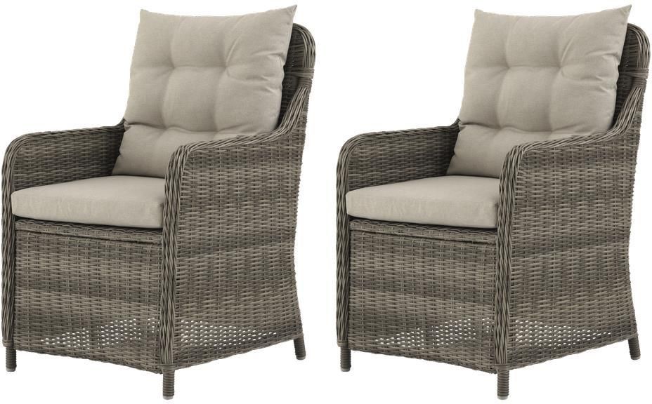 Dwa krzesła z technorattanu na taras. W zestawie dopasowane poduszki.