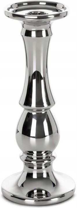 Świecznik JOLY wykonany z glinki ceramicznej, o srebrnej powierzchni, która nadaje mu elegancki, lustrzany połysk. Jest smukły, o klasycznym kształcie z subtelnymi zakrzywieniami oraz zwężeniami wzdłuż trzonu, co nadaje mu elegancki, dekoracyjny charakter. Jego podstawa jest stabilna i szeroka, zapewniając równowagę, a górna część ma miejsce na umieszczenie świecy. Odpowiednio dobrany świecznik doda blasku i stworzy atmosferę przytulności i relaksu we wnętrzu. Świecznik podkreśli też indywidualny styl twojego mieszkania. Świeczniki o rożnych kształtach i kolorach wspaniale uzupełnią aranżacją salonu czy pokoju dziennego. Kolacja przy świecach - jak najbardziej, ale znajdź godną oprawę dla swoich świec w postaci modnego świecznika. Świecznik lub zestaw świeczników to wspaniały element dekoracji każdego wnętrza: salonu, kuchni, holu czy przedpokoju. Świeczniki oraz lampiony doskonale prezentują się również na tarasie czy w ogrodowej altanie. Piękny świecznik to również świetny pomysł na oryginalny prezent z różnych okazji. Producent: Eurofirany Średnica: 10 cm, wysokość: 25 cm Kolor: srebrny Skład: glinka ceramiczna