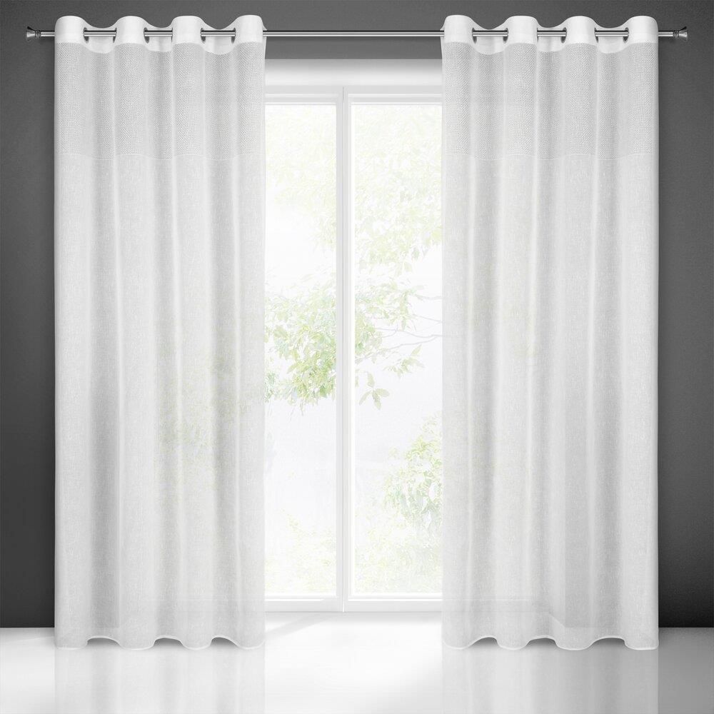Eurofirany Firana Na Przelotkach Zdobiona Pasem Tkaniny Z Siatki Marisa 140X250 Biała Łódź