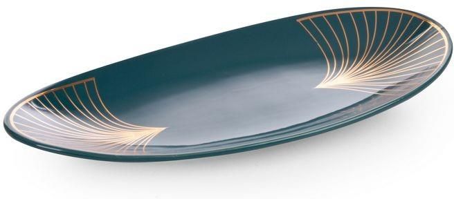 Patera dekoracyjna to elegancki i stylowy dodatek, który doskonale nadaje się do aranżacji wnętrz. Dzięki swojemu designowi i kolorystyce pasuje do różnorodnych stylów wystroju, dodając pomieszczeniu wyjątkowego uroku i charakteru. Wykonana z wysokiej jakości materiałów, patera jest trwała i solidna, co pozwala na długotrwałe użytkowanie. Doskonale sprawdzi się jako podstawka pod kwiaty, świeczniki, czy inne dekoracje, nadając im wyjątkowego podniosłego wyglądu. To niezwykle uniwersalny element wystroju, który może być wykorzystywany w różnych pomieszczeniach, dodając im elegancji i stylu. Kolor: turkusowy Skład: glinka ceramiczna Rozmiar: 33x16 cm