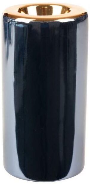 Świecznik dekoracyjny AMORA1 7x15 Eurofirany granatowy złoty walcowaty lśni Eurofirany Granatowy świecznik ceramiczny AMORA w kształcie walca, o gładkiej lśniącej powierzchni, to efektowny dodatek do każdego wnętrza. Wnętrze świecznika, przeznaczone na włożenie świecy posiada ciepły złoty kolor. Odpowiednio dobrany świecznik doda blasku i stworzy atmosferę przytulności i relaksu we wnętrzu. Świecznik podkreśli też indywidualny styl twojego mieszkania. Świeczniki o rożnych kształtach i kolorach wspaniale uzupełnią aranżacją salonu czy pokoju dziennego. Kolacja przy świecach - jak najbardziej, ale znajdź godną oprawę dla swoich świec w postaci modnego świecznika. Świecznik lub zestaw świeczników to wspaniały element dekoracji każdego wnętrza: salonu, kuchni, holu czy przedpokoju. Świeczniki oraz lampiony doskonale prezentują się również na tarasie czy w ogrodowej altanie. Piękny świecznik to również świetny pomysł na oryginalny prezent z różnych okazji. Producent: Eurofirany Średnica: 7 cm, wysokość: 15 cm Kolor: granatowy, złoty Skład: glinka ceramiczna Kolor: granatowy|złoty Skład: glinka ceramiczna Rozmiar: 7x15