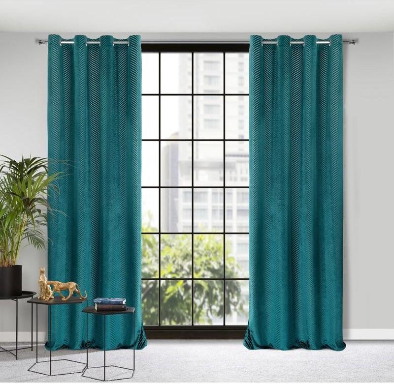 LUSSI TURKUSOWA ZASŁONA Z WELWETU ŻAKARDOWY WZÓR Cena dotyczy 1 sztuki Szczegóły tkanina: welwet wymiary: 140x250 cm kolor: ciemny turkusowy skład: 100% poliester gramatura tkaniny: 390 gsm rodzaj zawieszenia: metalowe przelotki wewnętrzna średnica przelotki: 4cm zewnętrzna średnica przelotki: 6cm …