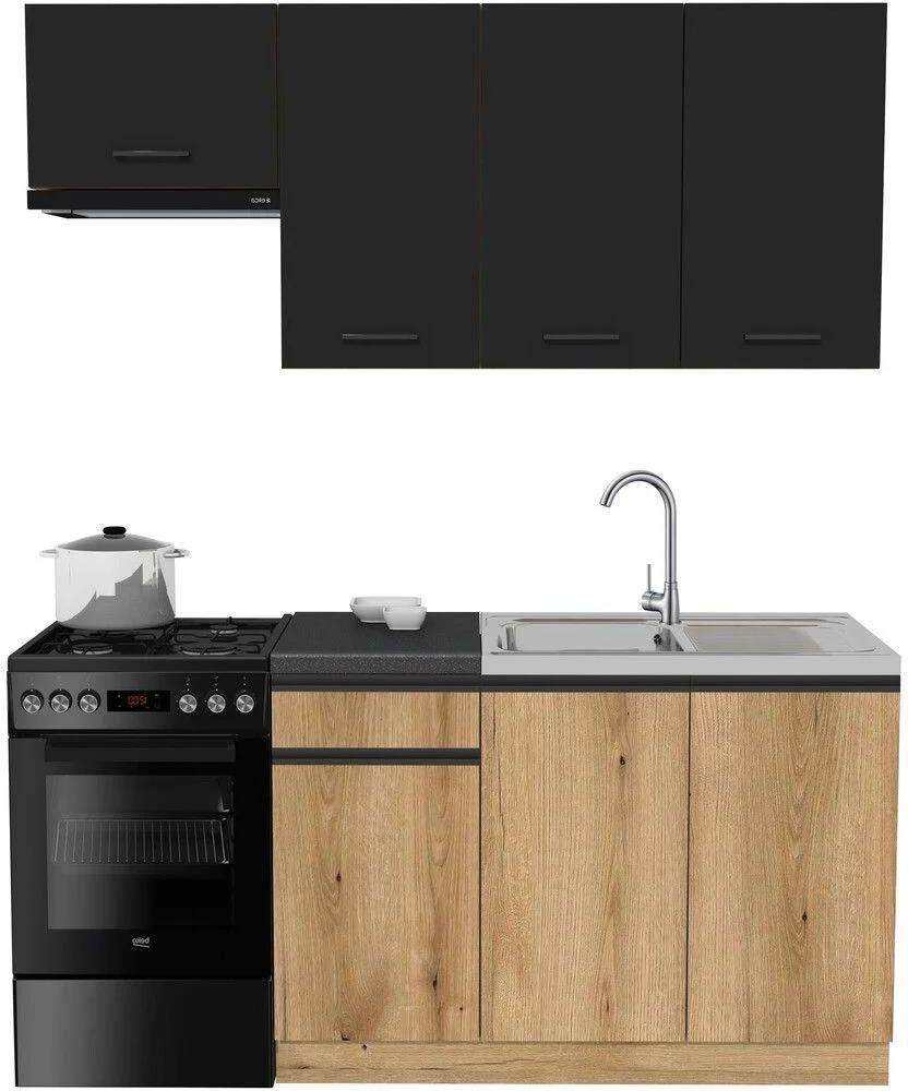 Fabryka Mebli Rawa Zestaw Mebli Kuchennych Presto Plus 170cm Płyta Laminowana Dąb Evoke/Czarny Łódź