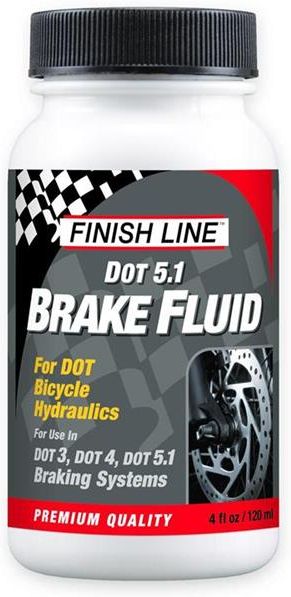Płyn Hamulcowy Finish Line Brake Fluid DOT 5.1 120 ml Opis: Profesjonalne produkty do czyszczenia i pielęgnacji części oraz podzespołów rowerowych uznanej amerykańskiej marki Finish Line. W asortymencie znajdują się smary, oleje do amortyzatorów, żele montażowe, odtłuszczacze oraz wiele innych produktów, dzięki którym będziemy w stanie w profesjonalny sposób konserwować najbardziej newralgiczne elementy naszego roweru, takie jak amortyzatory, hamulce czy łańcuchy. Producent: Finish Line Model: DOT Brake Fluid Płyn hamulcowy syntetyczny do stosowania w rowerowych hamulcach hydraulicznych. Posiada ultra niski współczynnik lepkości dla zachowania stałej efektywności systemów hydraulicznych nawet w niskich temperaturach. Syntetyczny płyn DOT 5.1 spełnia wymagania systemów, w których zalecany jest płyn o niższym indeksie DOT 3 lub DOT 4. Pojemność: 120 ml 036121001213