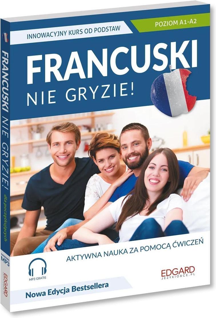 Chcesz nauczyć się francuskiego zupełnie od zera? Zacznij z Francuski nie gryzie! i już od pierwszych chwil poznawaj prawidłową wymowę oraz przystępnie wytłumaczoną gramatykę języka francuskiego. W książce znajdziesz materiał dostosowany stopniem trudności do osób dopiero rozpoczynających naukę lub pragnących odświeżyć znajomość języka francuskiego. A wszystko to osadzone w bardzo wygodnej formie i sprawdzonej metodzie z licznymi udogodnieniami dla uczących się języka od podstaw, np. tłumaczenia najważniejszych słówek, słowniczki obrazkowe oraz wzorcowe nagrania MP3, by już od początku uczyć się języka przydatnego w codziennej komunikacji, gotowego do aktywnego użycia. Opanuj podstawy języka francuskiego dzięki metodzie, którą sprawdziło już ponad 500 000 osób uczących się języków obcych. FRANCUSKI NIE GRYZIE! to: gotowe do użycia w rozmowie wzorce komunikacyjne słówka i konstrukcje przydatne w codziennej komunikacji z życia wzięte dialogi i teksty z tłumaczeniami wysokiej jakości nagrania do pobrania profesjonalnych lektorów niezbędne podstawy gramatyki w pigułce zestawy ćwiczeń sprawdzających i utrwalających zdobytą wiedzę Poznaj podstawy języka francuskiego – łatwo, szybko i przyjemnie! Rozwiązując liczne, różnorodne ćwiczenia, poznajesz niezbędne słownictwo, podstawy gramatyki i gotowe wzorce konwersacyjne. W ten sposób przyswajasz najważniejsze kompetencje językowe: czytanie, mówienie, słuchanie i pisanie. W każdym rozdziale znajdziesz nowe słówka i zwroty gotowe do użycia w prostych sytuacjach życia codziennego, porcję gramatyki, którą możesz od razu przećwiczyć, krótkie teksty i dialogi oraz testy i ćwiczenia podsumowujące, dzięki którym sprawdzisz, ile już umiesz. Nagrania native speakerów do pobrania online pozwolą ci poznać prawidłową wymowę i osłuchać się z językiem. Wydawnictwo EDGARD. Jako jeden z liderów segmentu językowego wyznaczamy trendy na rynku wydawniczym. Specjalizujemy się w publikacjach przeznaczonych do samodzielnej nauki języków obcych skierowanych do osób na każdym poziomie zaawansowania – zarówno do początkujących, jak też osób zaawansowanych, do pasjonatów i wielbicieli języków obcych. Wiemy, jak wspomagać wszechstronny rozwój i inspirować do poszukiwań nowych zainteresowań. Opieramy swoje działania o fachową wiedzę, skuteczną metodykę oraz bardzo cenne lata doświadczeń. Dzięki temu nieustannie rozwijamy i ulepszamy nasze produkty, by dostarczać coraz lepszych rozwiązań, zgodnych z potrzebami osób uczących się, ich zainteresowaniami oraz możliwościami. Francuski nie gryzie! Innowacyjny kurs od podstaw. Nie gryzie! "Francuski nie gryzie!" to nowoczesny kurs językowy, który w przystępny sposób wprowadza w świat języka francuskiego. Stworzony z myślą o osobach, które pragną nauczyć się tego pięknego języka od podstaw, kurs łączy innowacyjne metody nauczania z praktycznymi ćwiczeniami, które ułatwiają przyswajanie wiedzy. Dla kogo jest ta książka? Osoby początkujące, które chcą nauczyć się języka francuskiego Studenci i uczniowie poszukujący dodatkowych materiałów do nauki Miłośnicy kultury francuskiej, którzy pragną lepiej zrozumieć język Osoby planujące podróż do Francji i chcące komunikować się w języku lokalnym Co zyskasz dzięki tej publikacji? Przystępna nauka: Kurs zaprojektowany z myślą o osobach, które nigdy wcześniej nie miały styczności z językiem francuskim. Innowacyjne metody: Wykorzystanie nowoczesnych technik nauczania, które ułatwiają przyswajanie materiału. Praktyczne ćwiczenia: Liczne zadania i ćwiczenia, które pozwalają na aktywne wykorzystanie zdobytej wiedzy. Motywacja do nauki: Kurs stworzony w sposób, który zachęca do regularnej nauki i odkrywania języka francuskiego. Kluczowe tematy i obszary Podstawowe zwroty i słownictwo w języku francuskim Gramatyka i zasady budowy zdań Praktyczne dialogi i sytuacje życiowe Ćwiczenia rozwijające umiejętności mówienia i słuchania Kultura i zwyczaje francuskie w kontekście językowym O Autorze Klaudyna Banaszek – doświadczona nauczycielka języka francuskiego, pasjonatka kultury francuskiej, która z sukcesem prowadzi kursy językowe dla osób w różnym wieku. Jej metody nauczania są cenione za przystępność i efektywność. O Wydawcy Edgard – renomowane wydawnictwo specjalizujące się w publikacjach edukacyjnych, oferujące szeroki wybór materiałów do nauki języków obcych. Dzięki innowacyjnym podejściom i wysokiej jakości treści, Edgard zdobył zaufanie wielu uczniów i nauczycieli. Producent/osoba odpowiedzialna za bezpieczeństwo produktuEDGARD Mariusz JachimczukBelgijska 1102-511 Warszawaedgard@edgard.pl22 853 11 38