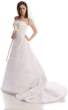 Rzeczywisty kolor sukni: BIAŁY Fason: klasyczny, tren Dekolt przód: odkryte ramiona Plecy: odkryte częściowo Zapięcie: suwak kryty z tyłu Ozdoby: koraliki, cekiny, falbanki Materiał: satyna, organza
