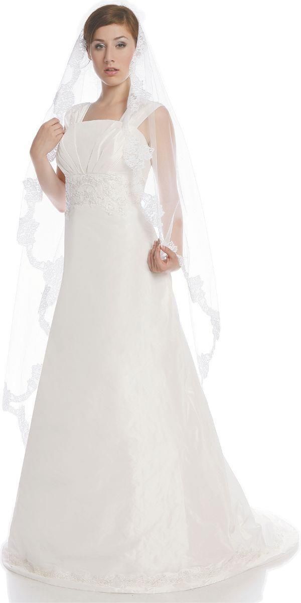 Fason: empire Dekolt przód: karo Plecy: dekolt karo Zapięcie: suwak kryty z tyłu Ozdoby: haftowana aplikacja, koraliki Materiał: tafta, tiul