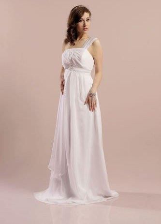 Fason: prosty Dekolt przód: na jedno ramię Plecy: odkryte Zapięcie: suwak zwykły z tyłu Ozdoby: haftowana aplikacja, koraliki, cekiny Materiał: szyfon, satyna