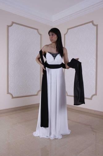 Fason: empire Dekolt przód: odkryte ramiona Plecy: odkryte Zapięcie: sznurowanie, suwak kryty z tyłu Ozdoby: haftowana aplikacja, kamienie Materiał: szyfon, atłas