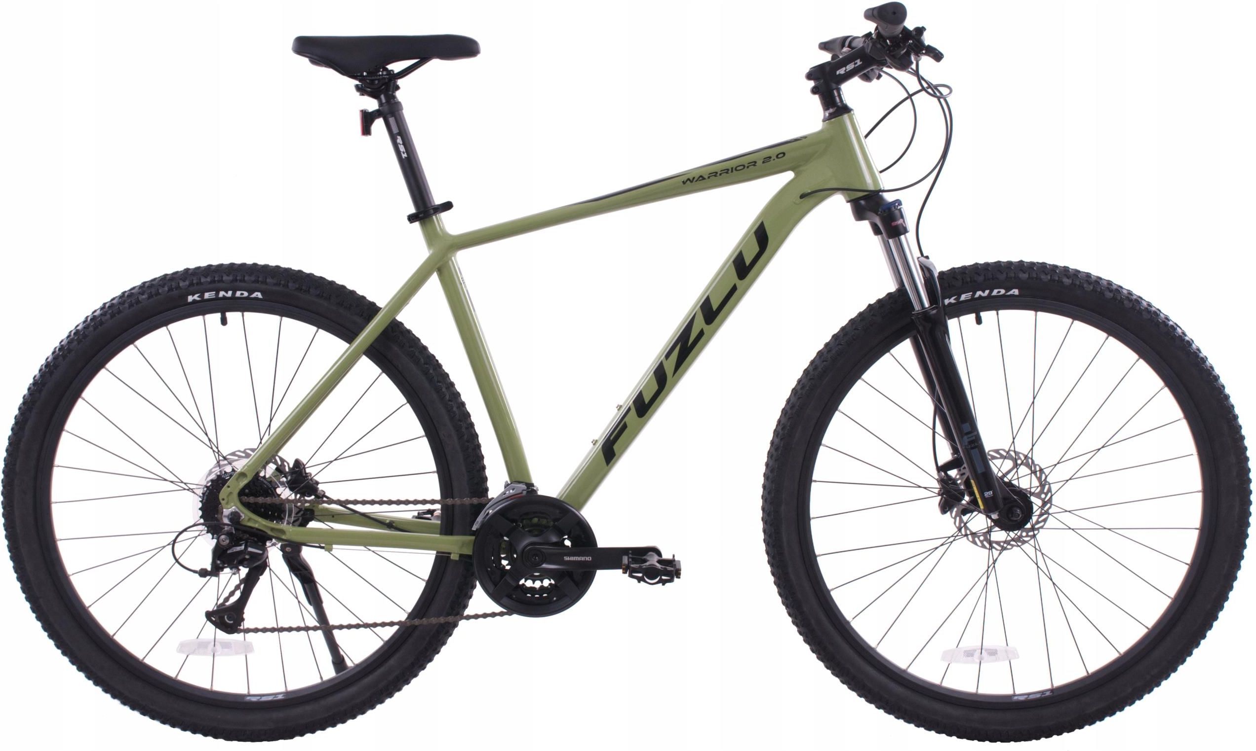 Rower górski Fuzlu Warrior 2.0 29” 21" Khaki-czarny połysk Szukasz roweru, który poradzi sobie w lesie, na górskim szlaku i na codziennych trasach? Ten model to strzał w dziesiątkę! Lekka, aluminiowa rama i amortyzator z blokadą sprawiają, że jazda jest wygodna nawet po wybojach. Napęd Shimano z 24 …