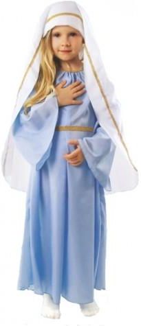 Postać Maryi znana jest jako matka Jezusa Chrystusa, którą najczęściej możemy spotkać podczas jasełek bądź innych imprez religijnych. Kostium dla dzieci Maryja zawiera: szatę z paskiem nakrycie głowy Niebieska sukienka z rozkloszowanymi rękawami, ozdobiona złotą lamówką przy dekolcie. Ozdobę stanowi złoty pasek.Białe nakrycie głowy również ze złotą aplikacją. Strój dziecięcy Maryja doskonały na występy wigilijne lub jasełka. Wymiary Szaty Maryi (+/- 3 cm): rozmiar 100/110 cm: Długość całkowita 85 cm Szerokość dolna sukienki 73 cm Szerokość w klatce piersiowej 42 cm Szerokość w pasie 44 cm Długość rękawa zewnętrzna 36 cm Długość rękawa wewnętrzna 24 cm Szerokość rękawa 18 cm Nakrycie głowy: Długość 136 cm Szerokość 35 cm rozmiar 110/120 cm: Długość całkowita 91 cm Szerokość dolna sukienki 75 cm Szerokość w klatce piersiowej 44 cm Szerokość w pasie 47 cm Długość rękawa zewnętrzna 40 cm Długość rękawa wewnętrzna 29 cm Szerokość rękawa 19 cm Nakrycie głowy: Długość 140 cm Szerokość 36 cm rozmiar 120/130 cm: Długość całkowita 102 cm Szerokość dolna sukienki 84 cm Szerokość w klatce piersiowej 46 cm Szerokość w pasie 48 cm Długość rękawa zewnętrzna 43 cm Długość rękawa wewnętrzna 32 cm Szerokość rękawa 20 cm Nakrycie głowy: Długość 144 cm Szerokość 40 cm rozmiar 130/140 cm: Długość całkowita 105 cm Szerokość dolna sukienki 88 cm Szerokość w klatce piersiowej 48 cm Szerokość w pasie 50 cm Długość rękawa zewnętrzna 46 cm Długość rękawa wewnętrzna 35 cm Szerokość rękawa 22 cm Nakrycie głowy: Długość 146 cm Szerokość 39 cm