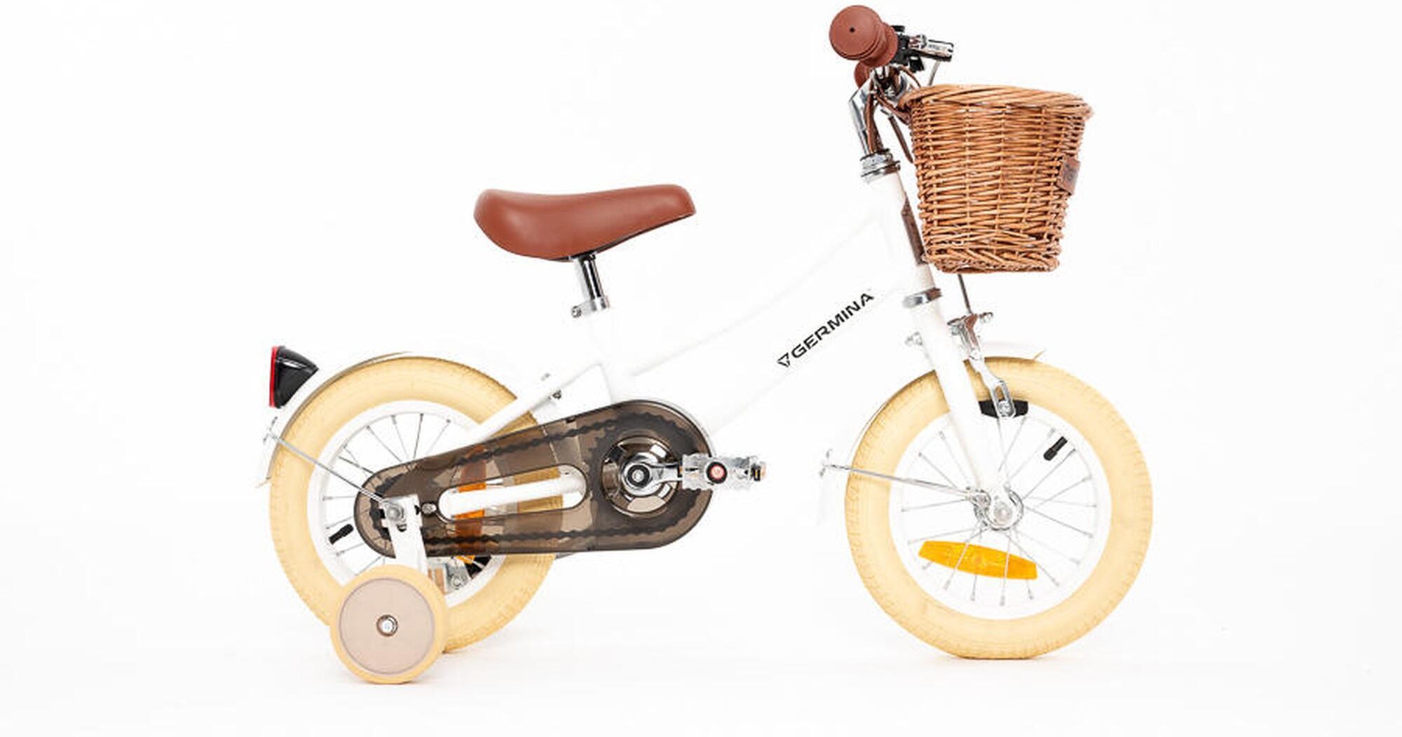 Germina Rower Dziecięcy 12" Vintage Kółka Boczne, Koszyk Łódź