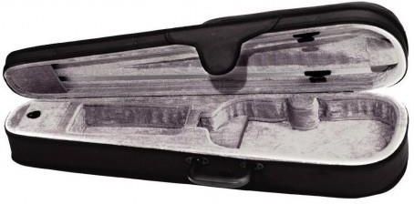 Elegancki futerał CVF 02 na skrzypce 4/4. - czasza styropianowa - pokrywa śrubowana z małą kieszenią - podstawa i boki tapicerowane, zawieszenie - 2 przyszyte szelki - waga ok. 1,2 kg - materiał zewnętrzny TEX - czarny - wewnątrz jasnoszary aksamit