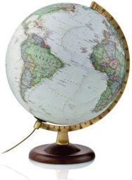Podświetlany globus biurkowy na drewnianej podstawie i z metalowym meridianem sygnowany renomowanym logo „National Geographic”. Mapa polityczna w języku angielskim w barwach popielatych, zielonych, różowych, niebieskich. Piękny w każdym szczególe. Szlachetna forma i prezycja wykonania sprawiają, że będzie ozdobą każdego wnętrza. Podświetlony może pełnić rolę niezwykłej lampki nocnej, przynoszącej sny pełne niezwykłych podróży i odkryć. Globusy sygnowane renomowanym logo „National Geographic” produkowane przez włoskiego producenta Tecnodidattica są odznaczają się wysoką jakością wykonania i perfekcją merytoryczną, cechami charakterystycznymi dla marki National Geographic. Globusy z logo „National Geographic” łączą zaawansowaną technologię Tecnodidattica z ponad 120-letnim doświadczeniem National Geographic.