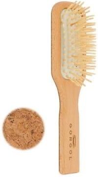 Gorgol szczotka mały kwadrat z drewnianą szpilką na korku 15 03 420 Szczotka pneumatyczna, szpilka drewniana, 9 rzędów, kolor jasny, korkowe wykończenie Główne cechy: -Wykończenie naturalnym korkiem- Szpilki drewniane- Poduszka pneumatyczna 100% guma.- Ekologiczne drewno bukowe certyfikowane FSC ® ( www.fsc.org )- Efekt masażu głowy dzięki drewnianym szpilkom- Odpowiednia dla wegan Szczotka pneumatyczna, przeznaczona jest do czesania, stylizowania, pielęgnacji włosów oraz do masażu skóry głowy. Poduszka pneumatyczna wykonana jest z kauczuku, czyli ze 100% gumy co daje dużą elastyczność i przede wszystkim trwałość.Jest to bardzo istotna cecha ponieważ w wielu konkurencyjnych produktach zamiast prawdziwej gumy stosowany jest tani sztuczny polimer jako zamiennik.Polimerowy zamiennik bardzo szybko rozpada się wskutek działania promieni światła słonecznego. Szpilka drewniana jest delikatna dla skóry głowy, nie drapie, jest materiałem całkowicie naturalnym, nie podrażnia skóry głowy i nie elektryzuje się.Jej specyficzny kształt i rozmiar powoduje przyjemne uczucie masowania skóry głowy podczas czesania. Dodatkowo tylna część szczotki wykończona jest prawdziwym, naturalnym korkiem.Dzięki temu szczotka zyskuje wyjątkowy wygląd, jest jeszcze bardziej naturalna i lżejsza od swojego odpowiednika wykonanego w całości z drewna. Z powodzeniem można użytkować szczotkę wraz z suszarką. Wszystkie szczotki pneumatyczne wyposażone są w otwór umożliwiający ruch powietrza na zewnątrz i do wewnątrz poduszki gumowej.Jest to otwór techniczny konieczny do prawidłowego działania szczotki pneumatycznej. Brak szpilki w otworze jest zamierzony i nie jest wadą produktu.Szczotka, zarówno rękojeść jak i drewniane szpilki wykonane są z ekologicznego bukowego drewna certyfikowanego FSC ® www.fsc.org Dzięki naturalnemu surowcowi jakim jest drewno, szczotka posiada właściwości antystatyczne. Produkt jest przyjazny dla środowiska i całkowicie biodegradowalny. Odpowiedni również dla wegan.