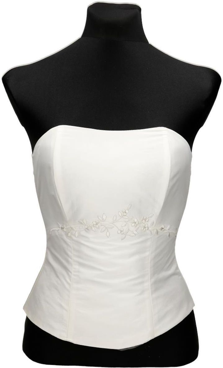 Gorset z fiszbinami wiązany z tyłu, Gorsetem podkreślisz piękne ramiona i uwydatnisz biust, wiązaniem z tyłu dobrze go dopasujesz. Materiał - połyskująca tafta z kwiatowym haftem. Dopasowana góra, podkreślona talia to klasa i styl. Gorset uzupełni twoją garderobę, można nosić go zarówno do spodni …