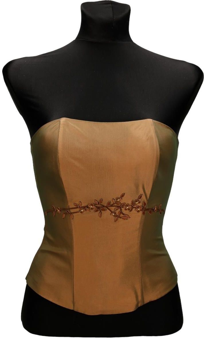 Gorset z fiszbinami wiązany z tyłu, Gorsetem podkreślisz piękne ramiona i uwydatnisz biust, wiązaniem z tyłu dobrze go dopasujesz. Materiał - połyskująca tafta z kwiatowym haftem. Dopasowana góra, podkreślona talia to klasa i styl. Gorset uzupełni twoją garderobę, można nosić go zarówno do spodni …