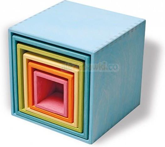 Daj dziecku do zabawy 6 drewnianych pudełek różnej wielkości a znajdzie dla nich "milion" zastosowań. Ustawi z nich piramidę lub wieżę, jak kto woli. Schowa jedno w drugie. Użyje ich jako pudełek do segregowania lub przechowywania. Połączy z innym klockami tworząc domy, zamki lub inne wymyślne budowle. Użyje ich jako celów rozpoczynając zawody w rzucaniu papierową kulką. A gdy jeszcze jest małym berbeciem z upodobaniem będzie wkładać do pudełka grzechotkę i wyjmować ją z niego, wkładać i wyjmować, wkładać i... Prosty przedmiot, którego przydatność zależy wyłącznie od kreatywności dziecka. To ono wymyśli jak z pudełek korzystać i zapewne zmieni to wielokrotnie a zabawka dostosuje się do aktualnych potrzeb albowiem jej rolą jest bycie uniwersalną i ponadczasową. Drewniane pudełka Grimm's: służą do układania, wkładania, wyjmowania, sortowania, budowania, liczenia, przechowywania, grania... to materiał stymulujący rozwój kreatywności dziecka; poprzez łączenie z innymi klockami pozwalają odkrywać nowe możliwości "starych" zabawek; pomagają rozwijać wyobraźnię przestrzenną; usprawniają koordynację oko-ręka, precyzję ruchów; przydają się podczas nauki kolorów; to także przyjemność płynąca ze styczności z doskonale wykończonym drewnem, które jest ciepłe i aksamitne w dotyku; miły naturalny zapach kojarzący się z przyrodą, słońcem i bezpieczeństwem. Deski budowlane Grimm's: 6 pudełek różnej wielkości, wykonanych z drewnianej sklejki wykończonej nietoksycznymi bejcami na bazie wody; zabawka jest bezpieczna dla dziecka; mają certyfikowana zgodnie z normą FSC; mają Pieczęć "Made-by-Nature Każdy widoczny na zabawce słój, sęk, odbarwienie to znak jakości, atut nie wada. Inne zabawki widoczne na zdjęciach nie wchodzą w skład zestawu. Można dokupić je oddzielnie. Drewniane zabawki Grimm's, które powstają od 1978 to prostota, piękno i uniwersalność oraz najwyższa jakość. Projektanci czerpiąc inspirację z pedagogiki Montessori i steinerowskiej kształtują drewno tak by nie straciło nic ze swej wyjątkowej istoty stając się jednocześnie zabawką, która pozwoli rozwijać się dziecięcej wyobraźni i kreatywności. Zabawką, która niczego nie narzuca zostawiając dziecku przestrzeń do poznawania świata we własnym tempie, zgodnie z własnymi zdolnościami i zainteresowaniami. Zabawki Grimm's to uczta dla zmysłów. Drewno potraktowane z sercem podczas obróbki pięknie pachnie, oryginalnie brzmi, cieszy oczy kształtem i barwą a nawet przyjemnie smakuje (choć oczywiście jadalne nie jest). I to co najważniejsze - zabawki Grimm's są wręcz aksamitne w dotyku. Zabawa nimi a nawet samo ich trzymanie to prawdziwa przyjemność. Palce same zaczynają błądzić po ich powierzchni odkrywając wyjątkową strukturę. Zabawki są regularnie sprawdzane pod względem jakości i bezpieczeństwa. Wszystkie produkty, a także użyte barwniki i oleje są zgodne z europejską normą bezpieczeństwa zabawek (EN 71) i standardami amerykańskimi. Także tkaniny lalek mają certyfikat Oeko-Tex. Wysokiej jakości drewno pozyskiwane jest w 100% z europejskich lasów zarządzanych w sposób zrównoważony, dzięki temu produkty są certyfikowane zgodnie z normą FSC (Forest Stewardship Council). Pieczęć "Made-by-Nature”. Regularna kontrola jakości i bezpieczeństwa. Zgodne z europejską normą bezpieczeństwa zabawek (EN 71) i standardami amerykańskimi. Użyte tkaniny posiadają pieczęć Oeko-Tex. Drewniane zabawki w razie konieczności można delikatnie czyścić wilgotną szmatką. Nie można ich moczyć. Zabawki należy trzymać z daleka od źródeł ciepła. Nie można kłaść ich na grzejnikach itp.. Nie wolno czyść ich środkami dezynfekującymi, gorącą wodą itp.. Kod Producenta: 10369