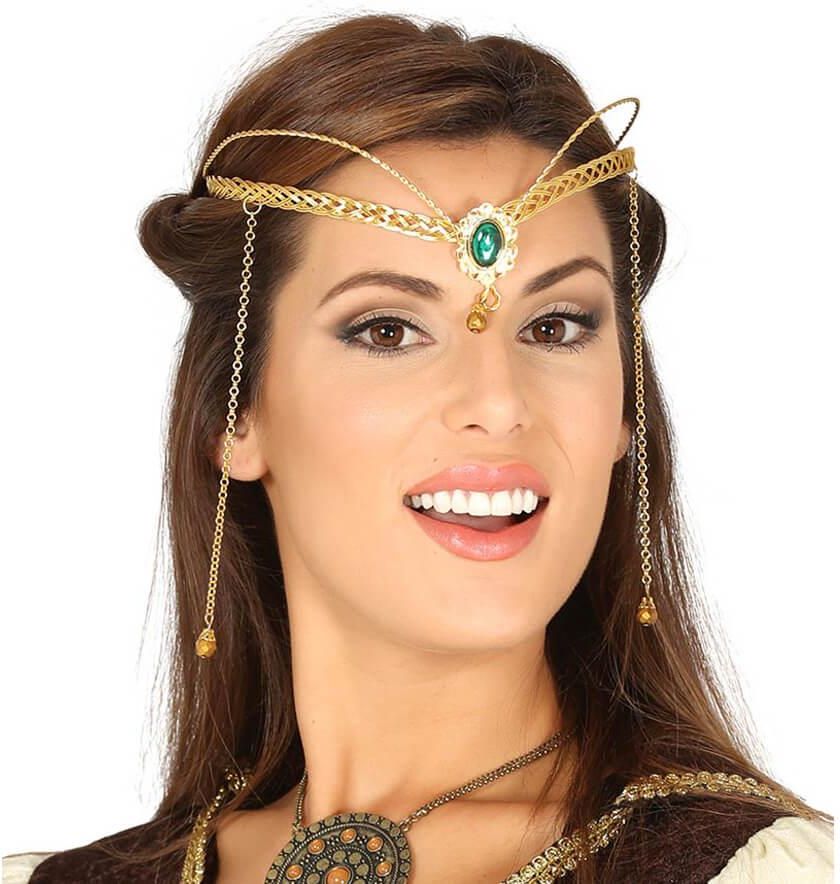 Średniowieczna Tiara – Królewski Blask na Karnawał i Imprezy Tematyczne Wkrocz w świat średniowiecznych bali i dworskich uczt dzięki naszej wyjątkowej tiarze! To niezwykle efektowny dodatek, który doda Twojemu przebraniu szczypty królewskiego splendoru. Tiara wykonana jest z metalu w kolorze starego złota, zdobiona imitacją zielonego diamentu oraz delikatnymi, wiszącymi złotymi łańcuszkami – doskonała dla każdej damy dworu, elfiej królowej lub średniowiecznej księżniczki. Cechy produktu Metalowa konstrukcja w eleganckim, złotym kolorze. Centralny element ozdobny – imitacja zielonego diamentu, która pięknie odbija światło i nadaje tiarze luksusowego charakteru. Urokliwe, delikatnie opadające złote łańcuszki dodają całości lekkości i wyrafinowanego wyglądu. Doskonała jako dodatek do przebrań na imprezy karnawałowe, bale przebierańców, sesje zdjęciowe oraz wydarzenia fantasy. Uniwersalny rozmiar – pasuje na większość głów, wygodna w noszeniu dzięki lekkiemu dopasowaniu. Idealny akcent do stylizacji historycznych i fantastycznych Nasza średniowieczna tiara to doskonałe dopełnienie każdego przebrania inspirowanego światem rycerzy, księżniczek, wróżek czy królowych. Dzięki wysokiej jakości wykonania i bogatym zdobieniom, doda każdej stylizacji elegancji i wyjątkowego charakteru. Świetnie sprawdzi się podczas bali, wieczorów tematycznych, sesji zdjęciowych oraz przedstawień teatralnych. Dodatkowe informacje Kolor tiary: złoty Kamień: imitacja zielonego diamentu w centralnej części Dodatki: złote, wiszące łańcuszki Materiał: metal Zastosowanie: dodatek do strojów karnawałowych, cosplay, imprezy tematyczne Niech ta bajkowa tiara stanie się klejnotem Twojej stylizacji i przeniesie Cię wprost do magicznego świata pełnego przygód i fantazji! Sprawdź także nasze inne dodatki do kostiumów: Korony, opaski i ozdoby do włosów w stylu fantasy Szaty, peleryny i inne akcesoria średniowieczne