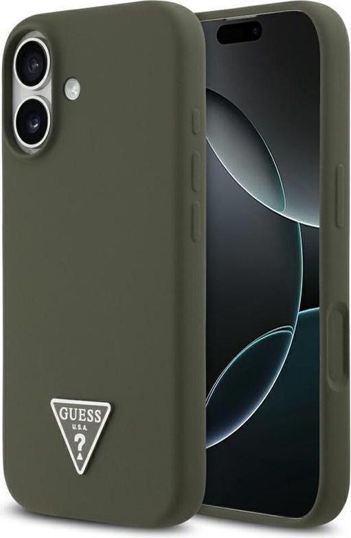 Guess Silicone Triangle Logo MagSafe - Etui iPhone 17 (khaki) Guess Guess Silicone Triangle Logo MagSafe - Etui iPhone 17 (khaki) Guess Guess Silicone Triangle Logo MagSafe etui wykonane z elastycznego, przyjemnego w dotyku silikonu, ze środkiem wyściełanym mikrofibrą. Silikon gwarantuje pewny oraz …