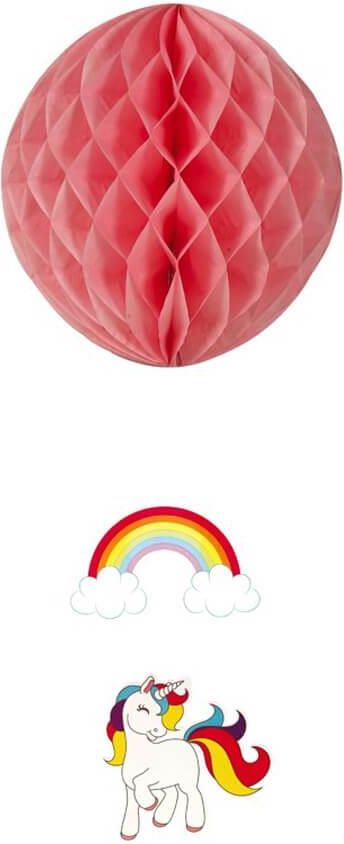 Kula bibułowa - czyli honeycumb ball - to element dekoracji sali czy pleneru którym można tworzyć przepiękne i niezapomniane kompozycje. Kule występują w kilku rozmiarach i kilkunastu kolorach dzięki czemu na pewno dobierzesz odpowiednie dekoracje do stylu Twojej uroczystości. Każda kula pakowana jest indywidualnie w opakowanie wraz z dodatkami. Kula ma podwieszane pod spodem dekoracje z motywem tęczy i jednorożca. czerwony,doklejka - topy jednorożec,Guirca,jednorożec / unicorn,Unicorn Party