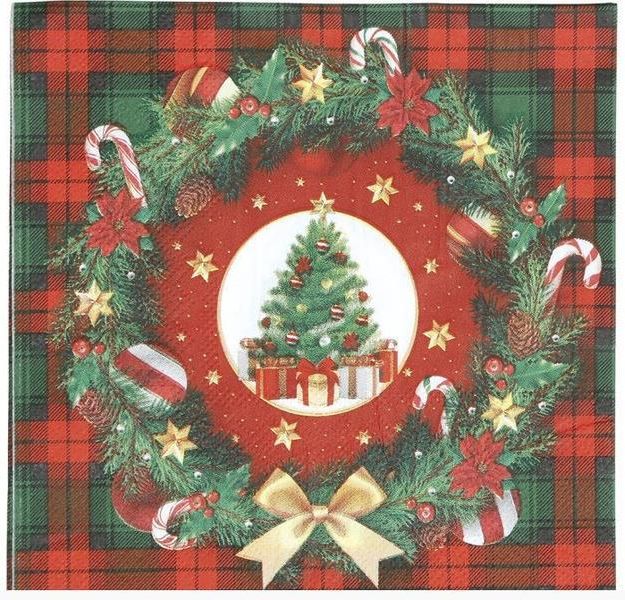 Świąteczne serwetki papierowe "Choinka i Szkocka Kratka" Zestaw 20 eleganckich serwetek papierowych o świątecznym wzorze, idealnych na bożonarodzeniowe przyjęcia, kolację wigilijną oraz rodzinne spotkania. Serwetki o rozmiarze 33x33 cm, ozdobione motywem choinki i klasyczną szkocką kratką, doskonale wprowadzą magiczny, świąteczny klimat na Twój stół. Te serwetki świetnie sprawdzą się na świąteczny stół, słodki bufet, a także do dekoracji podczas imprez tematycznych. Wykonane z wysokiej jakości papieru, są zarówno estetyczne, jak i praktyczne — idealne do serwowania przystawek, ciast czy świątecznych przekąsek. Stwórz wyjątkową atmosferę świąt Bożego Narodzenia dzięki tym stylowym serwetkom!