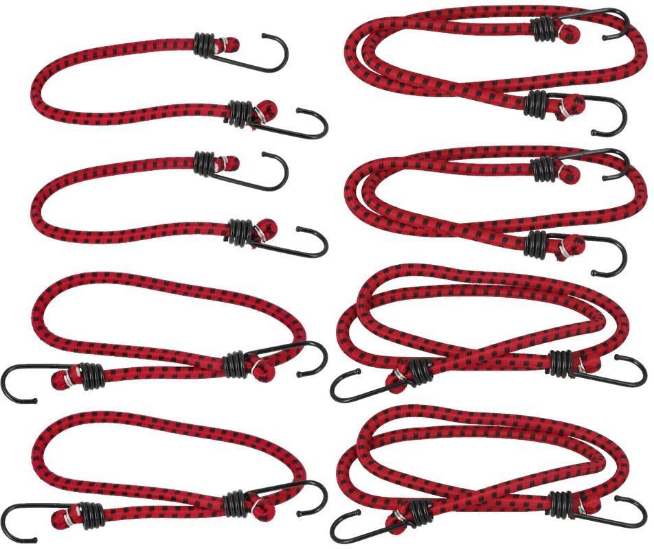 Linki bagażowe – klasyczne, elastyczne pasy transportowe z metalowym haczykiem na każdym końcu. Cztery długości, po dwie linki z każdej!