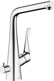 Hansgrohe Metris Jednouchwytowa bateria kuchenna z zaworem umożliwiającym podłączenie pralki lub zmywarki, DN15 Chrom 14888000 Kolor: Chrom Wymiary: wysokość 356 mm • ComfortZone 320 • możliwość ustawienia zakresu obrotu wylewki na 110°, 150° i 360° • strumień normalny • z zaworem do zmywarki • przepływ przy 3 bar: 13 l/ min • mieszacz ceramiczny • węże przyłączeniowe G ⅜ • może współpracować z przepływowymi podgrzewaczami wody