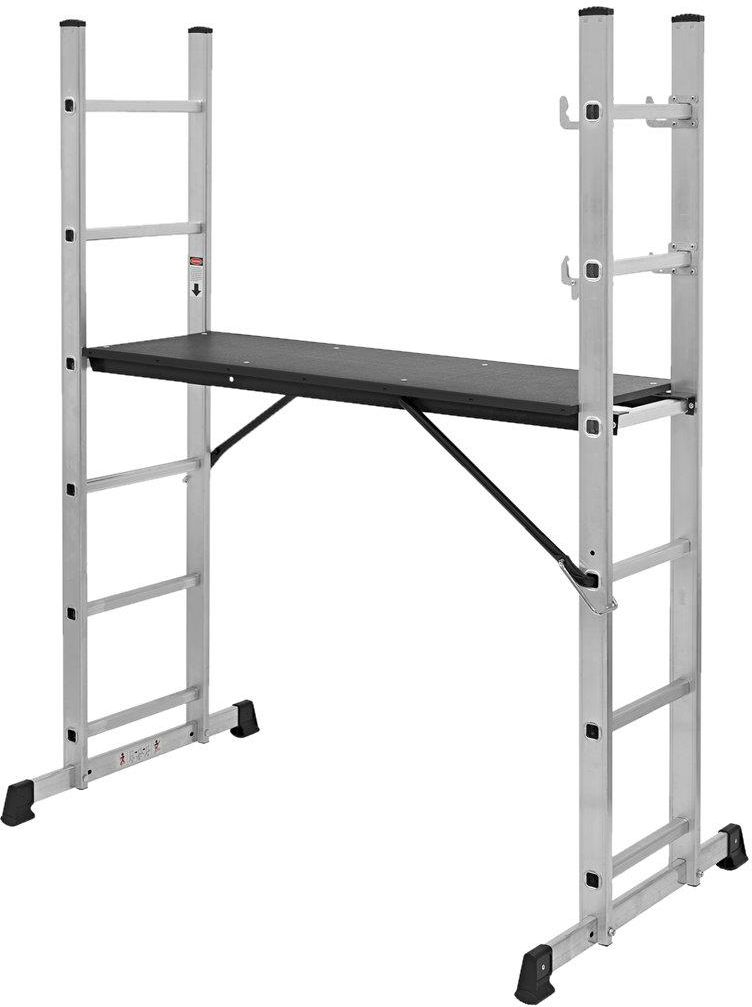 Drabina Kombinowana Z Platformą Dostosuj drabinę do pracy! Tej praktycznej drabiny kombinowanej marki Hard Head można używać w kilku trybach. Produkt może także posłużyć jako doskonała platforma robocza – świetna pomoc, gdy trzeba pomalować ściany lub przyciąć drzewo na kilku wysokościach! Kompletne rusztowanie Drabina kombinowana razem z platformą roboczą ze sklejki tworzą kompletne rusztowanie. Konstrukcja zapewnia stabilną podstawę do stania dzięki solidnym wspornikom do ustawienia na ziemi. Wysokość platformy/stopni: 99,8 / 159,2 / 273,5 cm. Łatwy montaż Bez względu na miejsce używania drabinę i platformę roboczą bardzo łatwo się montuje. Zatwierdzona zgodność z normą EN 131 Ta drabina spełnia wymogi normy EN 131. Specyfikacja: Maks. obciążenie: 150 kg Maks. wysokość robocza: 1,73 cm Wysokość platformy: 100 cm Wymiary po złożeniu: 1,66 m Szerokość: 39,5 cm Wzrost: 2,73 m Waga: 11,5 kg Drabina kombinowana z platformą 2x6 stopni Drabina kombinowana razem z platformą roboczą ze sklejki tworzą kompletne rusztowanie. Konstrukcja zapewnia stabilną podstawę do stania dzięki solidnym wspornikom do ustawienia na ziemi. Wysokość platformy/stopni: 99,8 / 159,2 / 273,5 cm. Łatwy montaż Bez względu na miejsce używania drabinę i platformę roboczą bardzo łatwo się montuje. Zatwierdzona zgodność z normą EN 131 Ta drabina spełnia wymogi normy EN 131. Specyfikacja: Maks. obciążenie: 150 kg Maks. wysokość robocza: 1,73 cm Wysokość platformy: 100 cm Wymiary po złożeniu: 1,66 m Szerokość: 39,5 cm Wzrost: 2,73 m Waga: 11,5 kg