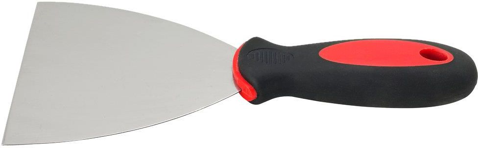 Nierdzewna szpachelka z trzonkiem z dwuskładnikowego tworzywa. Uchwyt \"SoftGrip\" zapewnia wygodny i stabilny chwyt. Otwór do zawieszenia. Wymiary: Dł:215xSzer:100 mm Ze stali nierdzewnej Uchwyt SoftGrip