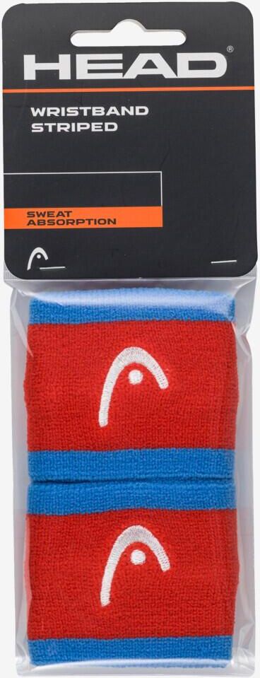 Frotka tenisowa Head Wristband Striped 2.5" czerwono-niebieska 2,5" frotka na nadgarstek pozwoli usunąć z czoła rezultat Twojej ciężkiej pracy. Dostępna w różnych kolorach, frotka wykonana jest w 90% nylonu. Pakowane po 2 sztuki. Długość: 7 cm