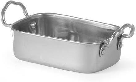 Miniaturowa brytfanna do przekąsek, o numerze katalogowym 426487, produkcji znanej i cenionej przez profesjonalistów oraz szefów kuchni na całym świecie firmy Hendi, oferującej kompleksowe wyposażenie gastronomiczne, o szerokości 9,5 centymetra, długości 18,5 centymetra oraz wysokości 4,5 centymetra. Wykonana zostało z najwyższej jakości stali nierdzewnej, o wysokiej odporności na zarysowania, wgniecenia czy inne uszkodzenia mechaniczne, ale także na wysokie temperatury. Posiada niewielkie uszka ułatwiające jej uchwycenie. Doskonale sprawdza się jako gustowne naczynie na smażone przekąski. Stanowi nietuzinkowe rozwiązanie dla restauracji, barów, firm cateringowych oraz hoteli.