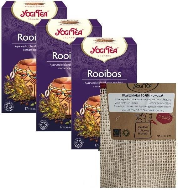 Herbata wykwintny rooibos 17 sasz.x1,8g 3 sztuki BIO Yogi Tea + torba Łódź