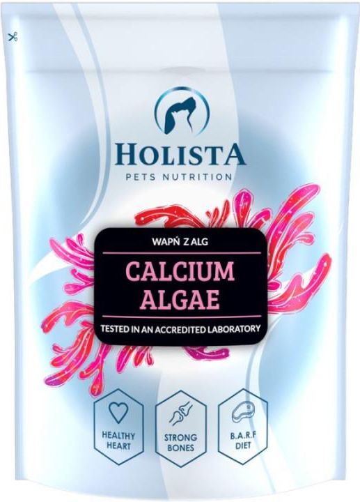 Holista Calcium Algae 600G Wapń Z Alg Dla Psa Holista Calcium Algae to wyjątkowy suplement diety, który wspiera zdrowie i dobre samopoczucie Twojego psa. Odżywki i witaminy odgrywają kluczową rolę w utrzymaniu prawidłowego funkcjonowania organizmu czworonożnych przyjaciół. Produkt ten dostarcza niezbędnych substancji odżywczych, które są istotne dla ich odporności i ogólnej kondycji. Składniki Holista Calcium Algae to morski kompleks multimineralny, który zawiera bioaktywny wapń, magnez oraz 72 minerały śladowe. Pochodzący w 100% z wodorostów czerwonych Lithothamnium calcareum, produkt ten jest naturalny i dobrze przyswajalny. Oto główne składniki: bioaktywny wapń – wspiera zdrowie kości i zębów, magnez – istotny dla prawidłowego funkcjonowania mięśni i układu nerwowego, 72 minerały śladowe – kluczowe dla procesów metabolicznych, wspierają odporność i ogólną kondycję. Zalecenia dotyczące dawkowania Zaleca się podawanie 7-8 g preparatu na każdy kilogram pokarmu. Dawkowanie powinno być dostosowane do indywidualnych potrzeb psa, co jest istotne dla optymalizacji efektów suplementacji. Odmierzoną dzienną dawkę można łatwo dodać do posiłku, co ułatwia włączenie suplementu do codziennego żywienia. Forma i wygoda użycia Holista Calcium Algae dostępny jest w formie proszku, co sprawia, że jest bardzo prosty w użyciu. Można go komfortowo wymieszać z mokrą lub suchą karmą, co pozwala na łatwe podanie suplementu. Dzięki odpowiedniej formie, Twój pies nie zauważy, że otrzymuje dodatkowe składniki odżywcze. Korzyści Podawanie Holista Calcium Algae przynosi wiele korzyści, takich jak: wzmocnienie odporności – wspiera układ immunologiczny, poprawa kondycji sierści – zdrowy wygląd dzięki odpowiednim składnikom odżywczym, lepsze samopoczucie – ogólne wsparcie dla organizmu, które przekłada się na większą energię i witalność, wsparcie zdrowia stawów – minerały, które pomagają w utrzymaniu ruchomości i elastyczności stawów, poprawa metabolizmu – wspomaga procesy trawienne, naturalne źródło składników odżywczych – dostarcza niezbędnych minerałów. Opakowanie Holista Calcium Algae dostępny jest w opakowaniu o wadze 600 g, co zapewnia długotrwałe użytkowanie. Taka ilość wystarczy na dłużej, co pozwala na regularne wsparcie diety Twojego pupila.