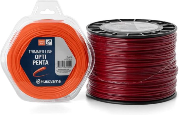 Żyłka tnąca 2,4mm, 90m pięciokątna Husqvarna Opti Penta Oryginalna żyłka (linka tnąca) Husqvarna typu Penta (przekrój pięciokątny). Wszechstronna żyłka do wykaszarki o pięciokątnym profilu. Idealne połączenie oszczędności energii i wydajnej pracy do wielu zastosowań. Pasuje do wszystkich standardowych głowic żyłkowych. Przeznaczona do kosy spalinowej o mocy od 1,1 KM do 1,9 KM Wymiary Waga netto - 500 g Średnica żyłki - 2.4 mm typ: pięciokątna (Penta) długość: 90m