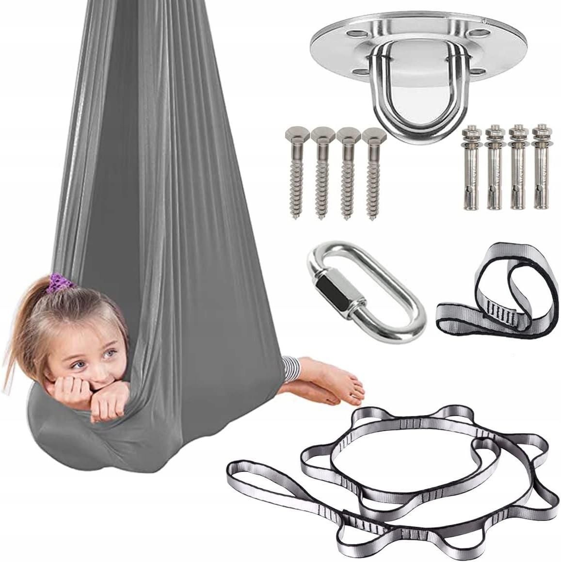 Huśtawka Sensoryczna Terapeutyczna Dla Dzieci Hamak 280X150Cm 100Kg Szara 1828592016 Łódź