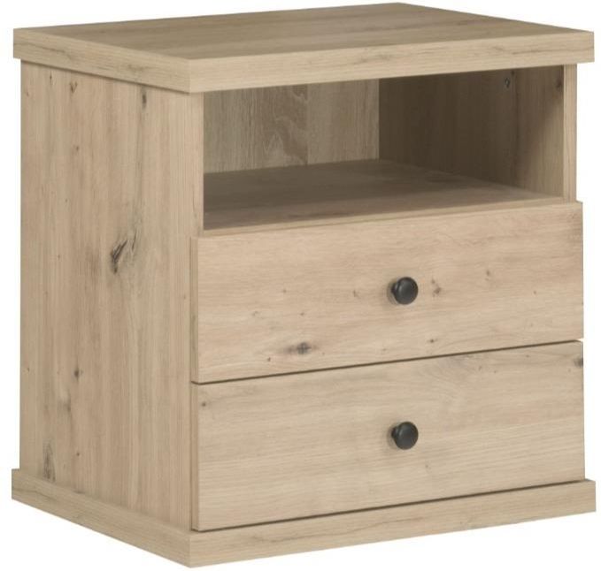 Nowoczesna szafka nocna stojąca z szufladami CALI, polskiego producenta JARSTOL. Elegancka, prosta w stylu i bardzo funkcjonalna. Wykonana z laminowanej płyty meblowej w kolorze dąb artisan. Szafka posiada 2 szuflady, które pozwalają na wygodne ułożenie niezbędnych rzeczy oraz półkę bezpośrednio nad nimi. W szafce zastosowano system metalowych zawiasów z cichym domykiem. Produkt dostępny jest w wersjach z nóżkami lub bez nich. DANE TECHNICZNE: Wymiary: 50 x 48 x 40 cm (wys./szer./gł.) Materiał: laminowana płyta meblowa, płyta HDF, okleina ABS, metal Rozwiązania: 2 szuflady + półka, cichy domyk, czarne metalowe nóżki 10 cm(opcja dodatkowa) Kolor: dąb artisan, czarny Gwarancja: 2 lata Produkt do samodzielnego montażu * Ze względu na różne ustawienia urządzeń elektronicznych na których oglądamy produkty, odcień kolorystyczny może się delikatnie różnić.