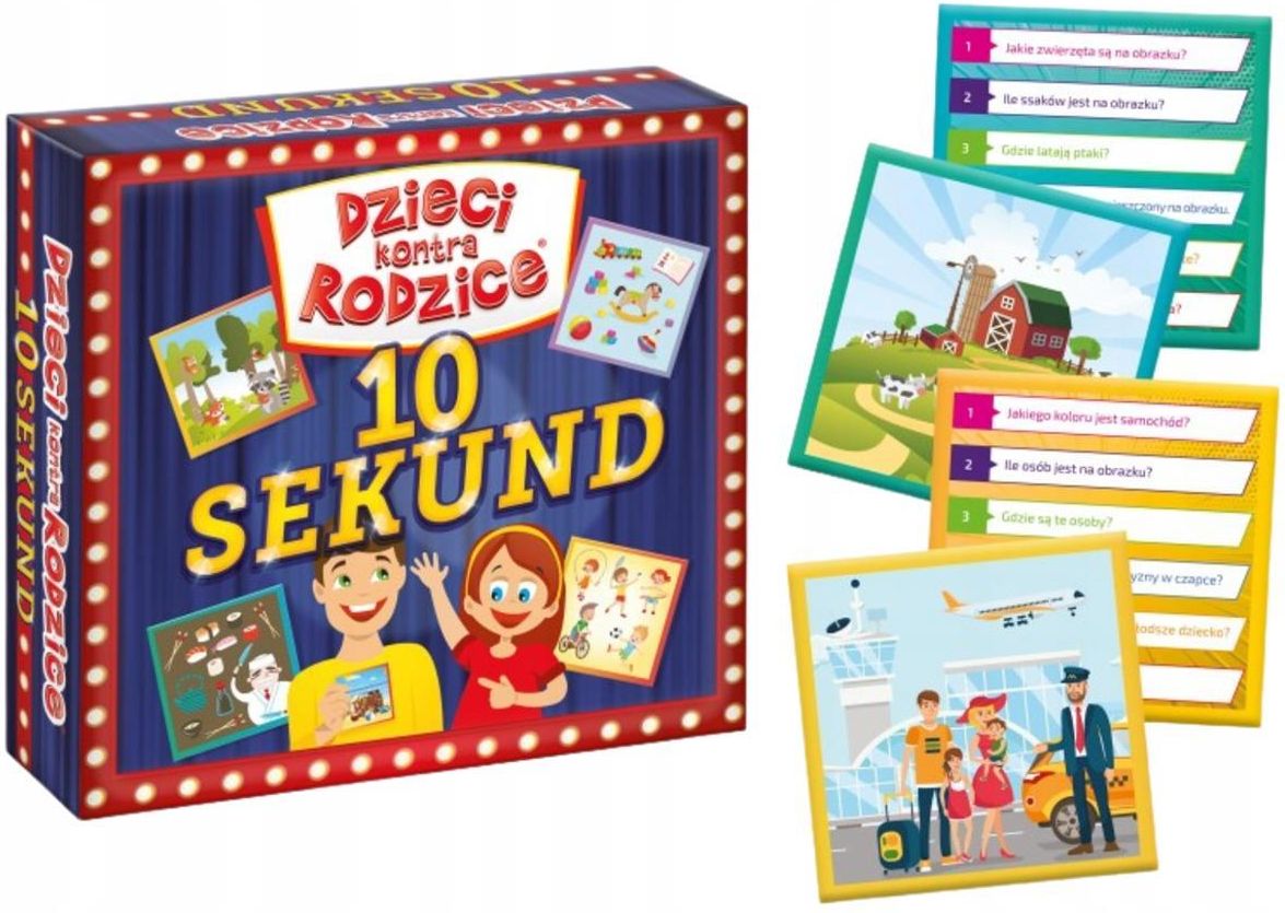 Dzieci kontra Rodzice. 10 Sekund Rodzinna gra 10 Sekund to połączenie zabawy pamięciowej z tytułową rywalizacją Dzieci kontra Rodzice. Zasady rozgrywki są bardzo proste, dzięki czemu idealnie nadają się do rozgrywki z dziećmi powyżej 5 roku życia. W zestawie znajduje się 48 dwustronnych kart, które …