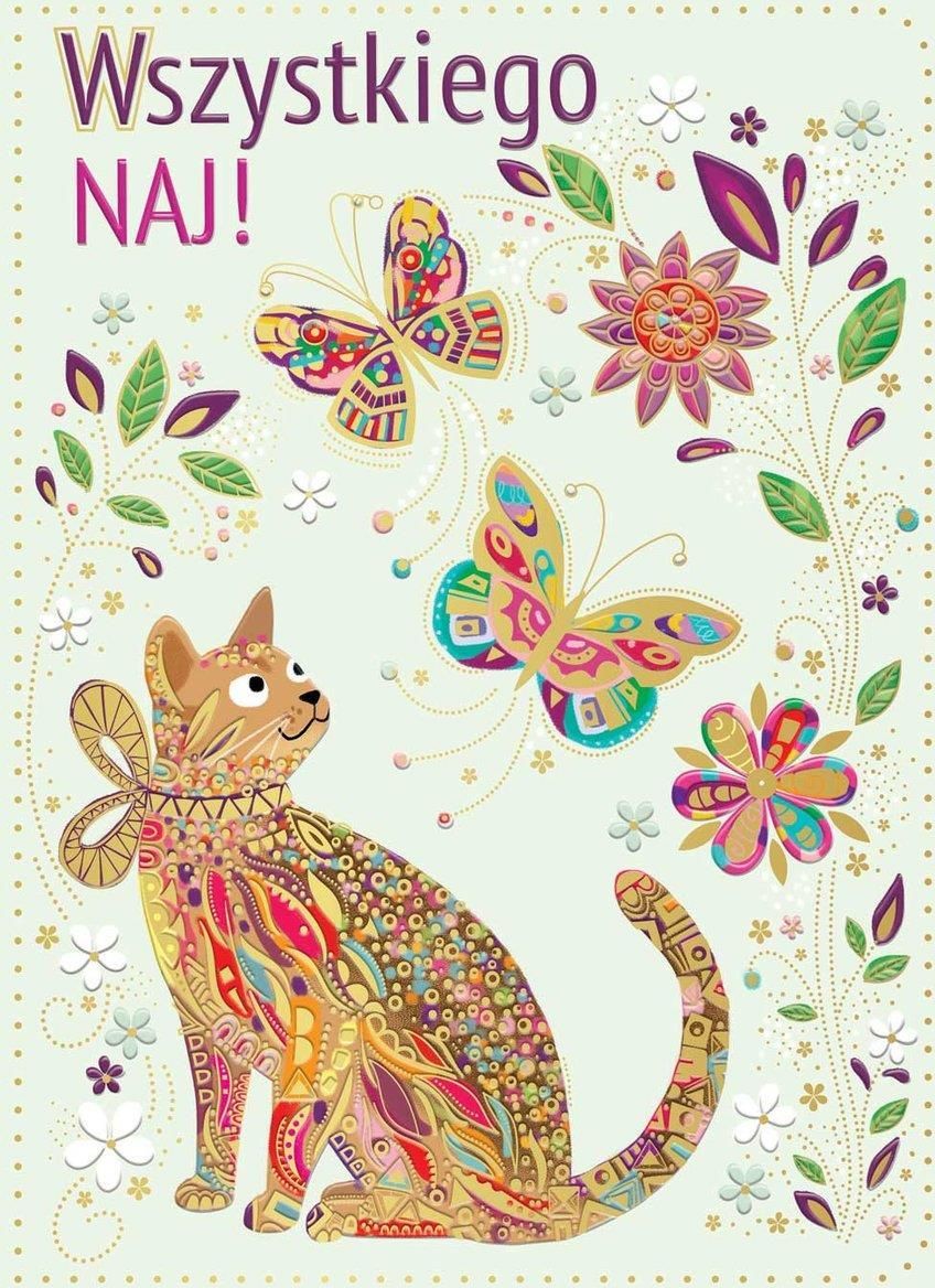 Wybierasz się na urodziny? A może zamierzasz złożyć komuś życzenia w formie listu? Śliczna kartka okolicznościowa zdecydowanie Ci się przyda! Na jasnozielonej kartce widać sympatycznego kota, motylki, kwiaty oraz napis "Wszystkiego NAJ!". Wewnątrz kartki znajdują się też kolorowe kwiatki oraz …