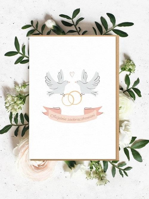 To już oficjalne. Nie ma odwrotu. Twoi przyjaciele o gołębim sercu zostali zaobrączkowani! Z myślą o gołębiach miłości, które wkraczają w nowy etap życia, stworzyliśmy kartkę OFICJALNIE ZAOBRĄCZKOWANI. Polecamy ją jako uniwersalny dodatek do prezentu dla nowożeńców. Kartka jest pusta w środku i …