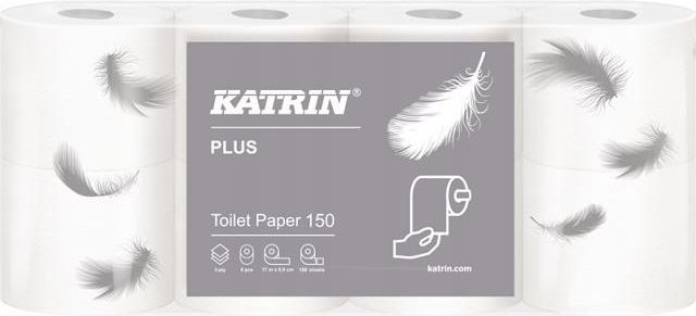 Papier toaletowy Katrin Plus (8 rolek) 3 warstwy 100% celuloza 150 listków 16525/557305 Katrin Plus Toilet 150 16525 Wysokiej jakości bialy papier toaletowy Wyjątkowo miekki i przyjemny w uzyciu Specjalnie zaprojektowany do stosowania w hotelach ? 118 y 96 mm x 17,25 m