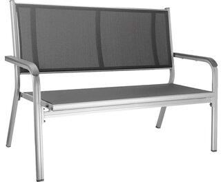 Ławka ogrodowa marki KETTLER została wykonana z wysokiej jakości aluminium, jest zarazem trwała i lekka. Siedzisko i oparcie zostały wykonane z szybkoschnącej i przepuszczalnej tkaniny. Tkanina jest przyjazna dla skóry. Podłokietniki zostały wykonane z żywicy, dla zapewnienia maksymalnie miękkiego podparcia. Nogi krzesła zostały zakończone specjalnie wyprofilowanymi gumowymi podkładkami, dla zapewnienia maksymalnej stabilności krzesła na każdej powierzchni. Dzięki użytym materiałom, ławka nie zmieni koloru i nie zardzewieje, jest odporna na warunki atmosferyczne oraz promienie UV.