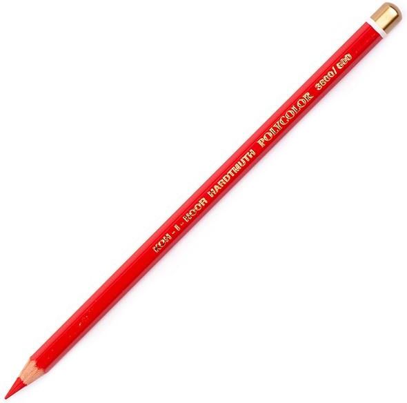 Kredka Koh-I-Noor Polycolor - 600 Light scarlet red Seria Polycolor firmy Koh-I-Noor to artystyczne, w pełni profesjonalne kredki w sześciokątnej oprawie z wielokrotnie lakierowanego drewna cedrowego. Gwarantują przyjemną miękkość rysowania i trwałe, intensywne kolory, które łatwo się ze sobą mieszają. Rdzeń Polycolorów zawiera starannie dobrane i wyselekcjonowane pigmenty bardzo wysokiej jakości. Kredki nie łamią się w trakcie temperowania.