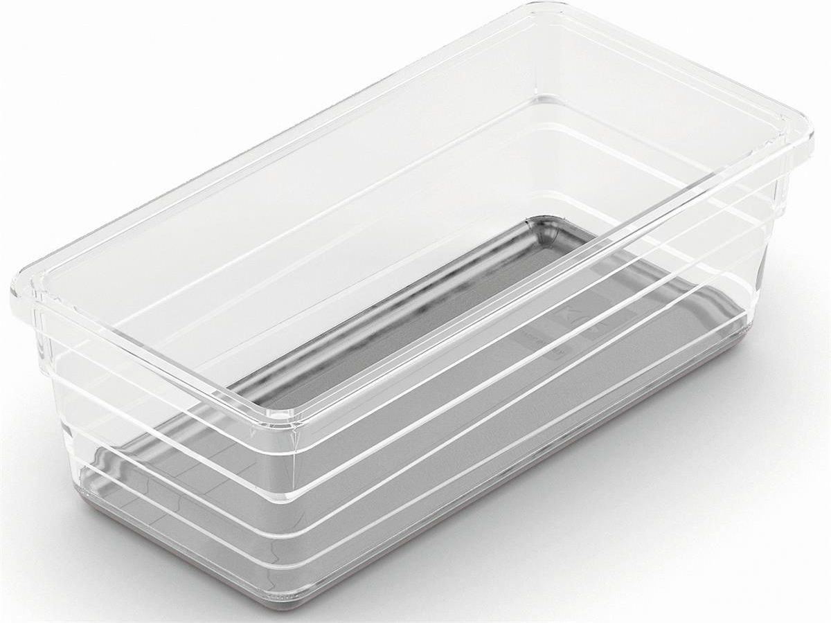 Organizer szufladowy Curver Sistemo to idealne rozwiązanie dla osób, które chcą zachować porządek w szufladach w łazience, kuchni czy biurze. Dzięki 9 wariantom rozmiarowym, od 7,5 x 7,5 cm do 39 x 24 cm, każdy może dopasować pojemniki do swoich potrzeb. Wszystkie pojemniki mają wysokość 5 cm, co pozwala na przechowywanie różnych przedmiotów, takich jak kosmetyki, przybory kuchenne, akcesoria biurowe czy drobiazgi.Organizer wykonany jest z tworzywa sztucznego o transparentnym kolorze z szarą podstawą, dzięki czemu łatwo można zobaczyć, co znajduje się wewnątrz pojemnika. Antypoślizgowa powierzchnia zapobiega przesuwaniu się przedmiotów wewnątrz organizerów. Dno pojemnika również pokryte jest powłoką Non-Slip, dzięki czemu produkt również nie przemieści się w szufladzie. Organizer szufladowy Curver Sistemo to także łatwy w utrzymaniu w czystości produkt. Wystarczy przetrzeć pojemniki wilgotną ściereczką, by pozbyć się kurzu i zabrudzeń.Dużą zaletą Organizera szufladowego Curver Sistemo jest możliwość dowolnego ułożenia pojemników w szufladzie. Dzięki temu można dostosować organizację do indywidualnych potrzeb. Pojemniki można ustawiać jednym na drugim lub obok siebie, tworząc w ten sposób spójną całość. Organizery Sistemo wyróżniają się estetycznym wykończeniem i nowoczesnym wyglądem, dzięki czemu doskonale dopasują się do każdego pomieszczenia. Dodatkowo, tworzywo sztuczne, z którego wykonany jest organizer, jest bardzo trwałe i odporne na uszkodzenia mechaniczne oraz działanie wilgoci. Dzięki temu produkt będzie służył przez wiele lat, a jego użytkowanie będzie niezwykle wygodne i przyjemne.Organizer szufladowy Curver Sistemo to produkt o wysokiej jakości, który z pewnością pozwoli zachować porządek w każdym pomieszczeniu. Dzięki różnym rozmiarom pojemników, każdy może dostosować organizację do swoich potrzeb, a transparentny kolor i antypoślizgowa powierzchnia zapewnią estetyczny wygląd i bezpieczeństwo przechowywanych przedmiotów. Plastikowy organizer do szuflady Jeśli chcesz wprowadzić porządek i harmonię do swojego życia, organizer do szuflady może być kluczem do sukcesu. Jego smukły, prostokątny kształt z łatwością mieści się w wielu szufladach i oferuje idealne miejsce na drobne przedmioty. Szczególną cechą pojemnika do przechowywania małych przedmiotów jest gumowana podstawa. Chroni ona nie tylko pojemnik przed ślizganiem się, ale także szufladę przed zarysowaniami. Wnętrze pojemnika zapewnia, że wszystkie przedmioty pozostają na swoim miejscu. Nie musisz się już martwić, że coś się zgubi - dzięki Box wszystko jest dokładnie tam, gdzie być powinno. Przezroczystość paneli bocznych pozwala szybko znaleźć potrzebne przedmioty i eliminuje konieczność żmudnego szperania i grzebania w szufladzie. Dzięki organizerowi wszystko, czego potrzebujesz, jest w zasięgu ręki. Możliwość piętrowania pojemników Sistemo pozwala również na maksymalne wykorzystanie dostępnej przestrzeni. Nie ogranicza się to tylko do biura - świetnie sprawdza się również w łazience, garderobie czy kuchni. Oto wszechstronny organizer, który może naprawdę zmienić Twoje codzienne życieModułowy i konfigurowalnyAntypoślizgowa podstawaMożliwość sztaplowaniaDoskonała organizacja w szufladach