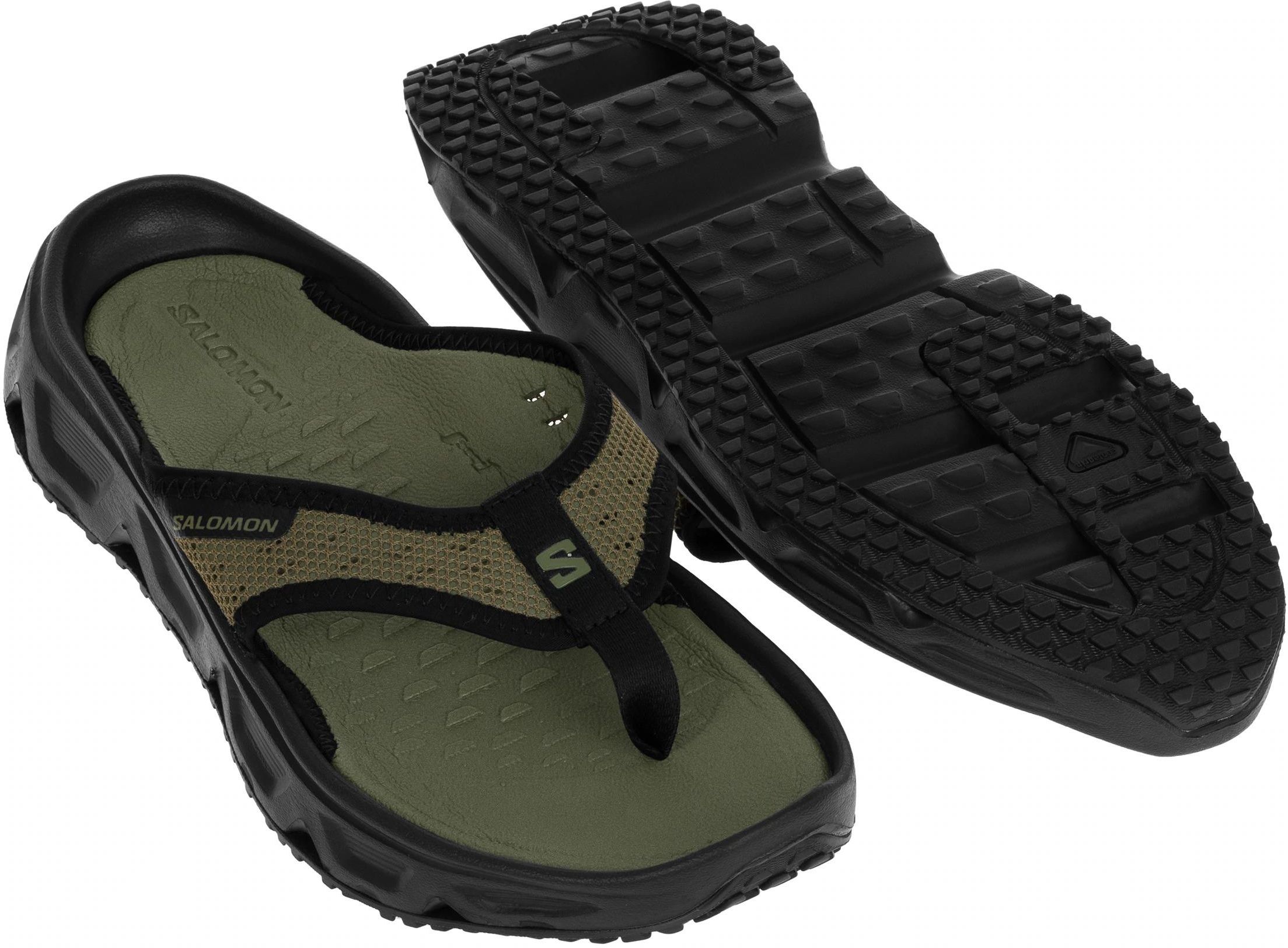 Klapki w kolorach czerni i zieleni o konstrukcji japonek. Wykonane zostały z połączenia poliestru oraz miękkiej pianki EVA. Model wyposażono w bieżnikowaną podeszwę, co zapewnia dobrą przyczepność. Sprawdzą się do użytku na zewnątrz w letnie dni, na basenie czy plaży lub jako uniwersalne obuwie domowe.