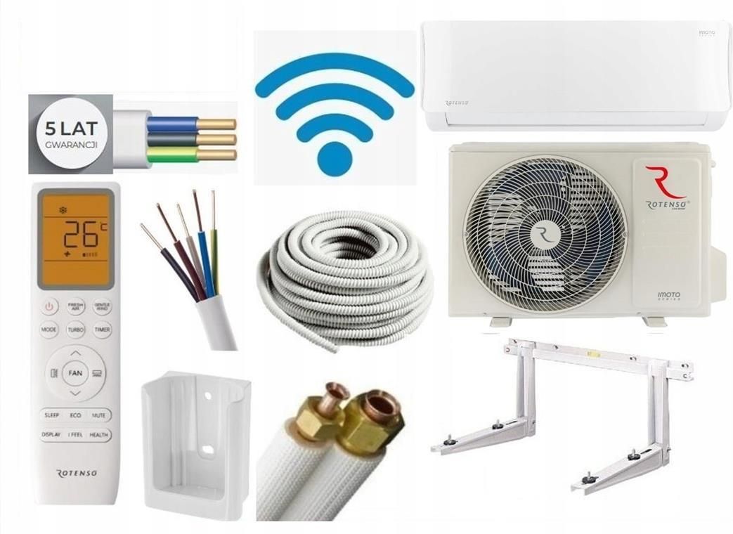 Zestaw: Najnowszy klimatyzator pokojowy Rotenso Imoto I35X z wbudowaną Grzałką Tacy Ociekowej oraz zestawem montażowym. Najnowszy model z katalogu producenta - seria X . Klimatyzator idealny do domu, biura, sklepu, niewielkiej serwerowni. Moc wystarczająca do ok 40m2. Do wyboru jeden z kilku trybów …